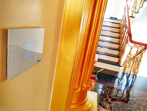 Hệ thống công tắc cảm ứng thông minh Lumi được lắp đặt trên hành lang tòa nhà